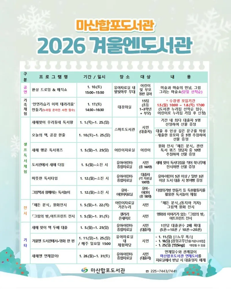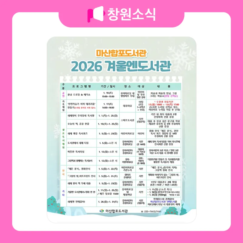 마산합포도서관 2026 겨울엔도서관 프로그램 안내