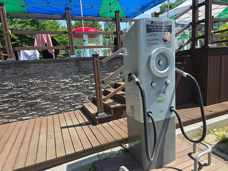 물놀이장의 즐거운 모습을 살펴보기에 앞서 다양한 시설을 소개해 드리도록 하겠습니다. 먼저, 흙먼지털이기가 설치되어 있기 때문에 물놀이를 즐기고 더욱 깨끗하게 정리한 후 귀가할 수 있습니다.