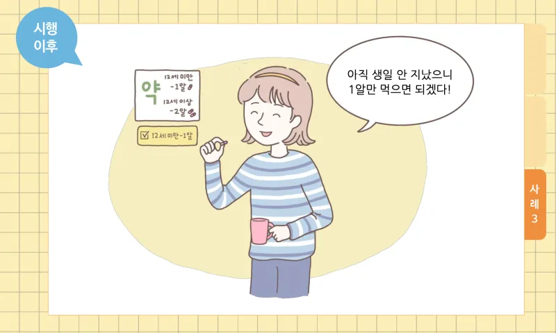당연히 만 나이를 기준으로 하고 있으나 이를 혼동하여 정량을 초과해 과다 복용할 우려가 있습니다.