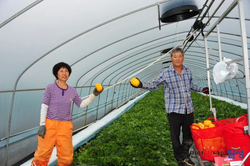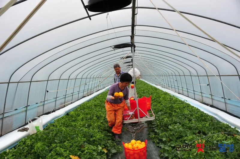 10월에 호박씨와 참외씨를 파종하여 싹이 나면 접을 붙인 후 한 겨울을 보낸 후 2월에 꽃이 피면 양봉 한 통을 하우스에 넣어 한 달 내내 수정을 시킨다고 합니다. 이렇게 해서 3월 초에는 첫 수확을 하는데 지난겨울 한파로 인해 올해는 10 여일 이상 출하가 늦어지고 생산량도 20~30% 줄어들었다고 합니다.