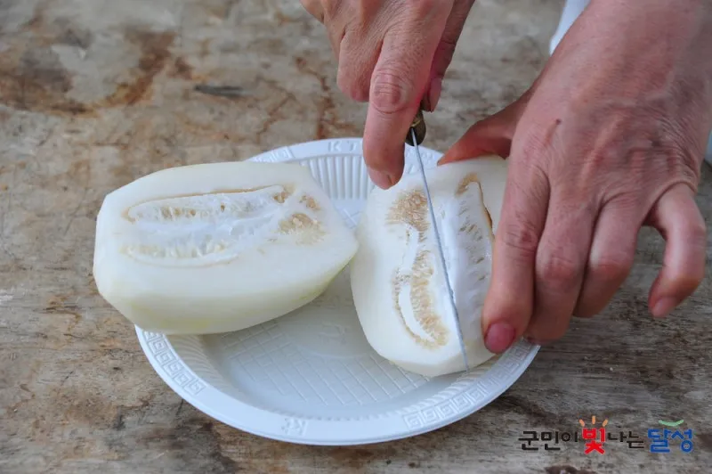 잠시 일손을 멈추시고 맛 보라며 깎아주신 참외는 육질의 아삭한 식감과 맛있는 당도를 느낄 수 있었습니다. 참외는 수확한 날보다 하루 지나 먹으면 수분이 날아가 당도가 더 깊어진다고 합니다.
