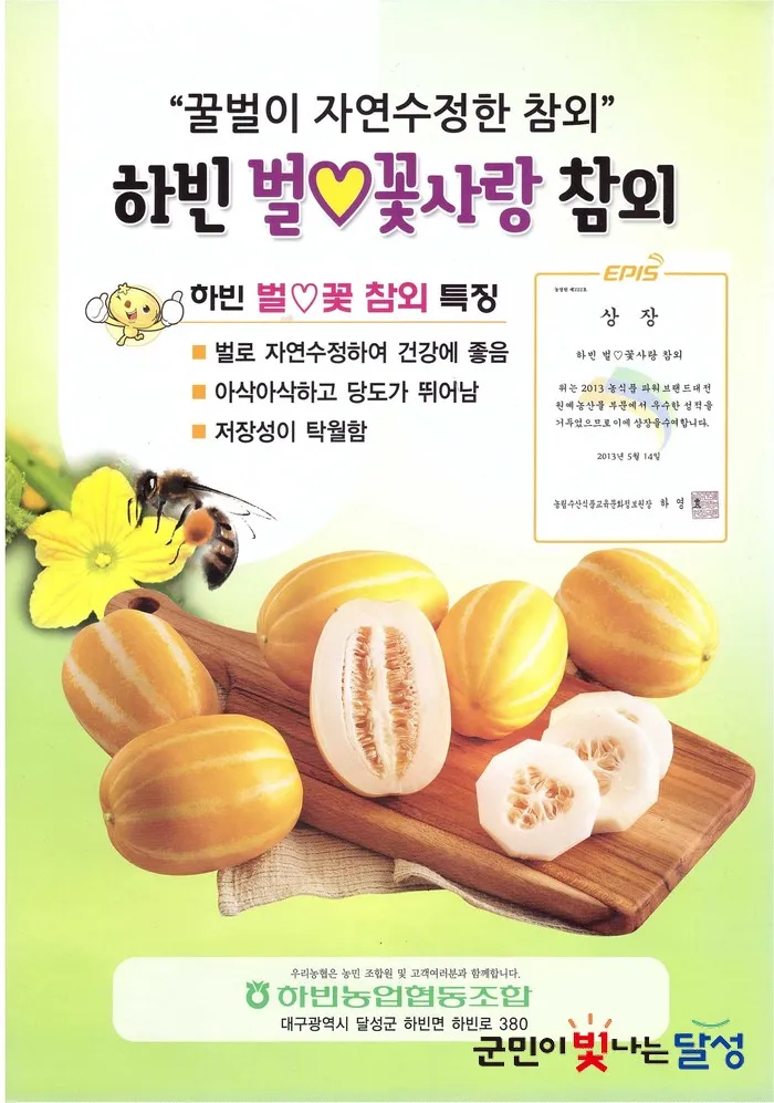 조 대표는 "강 하나 사이에 두고 같은 토양, 같은 기후, 같은 기술로 경작되는 성주와 하빈 참외는 별반 차이가 없다"라며 하빈 벌꽃사랑 참외에 많은 관심 가져달라고 했습니다.