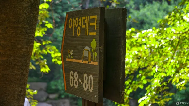 오도산자연휴양림 캠핑장은 합천의 청정 자연을 품은 숲속 캠핑지로, 정갈하게 정비된 데크 사이트와 산책로, 놀이시설 등 다양한 편의시설이 마련되어 있습니다. 다만 캠핑 사이트 내로 차량 진입은 불가능하며, 입구에 위치한 주차장에 차량을 주차한 후 짐을 옮겨야 합니다.