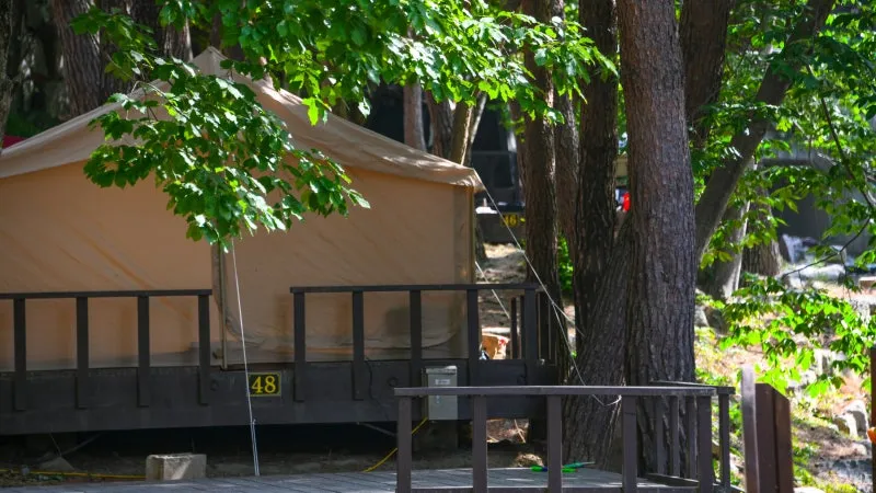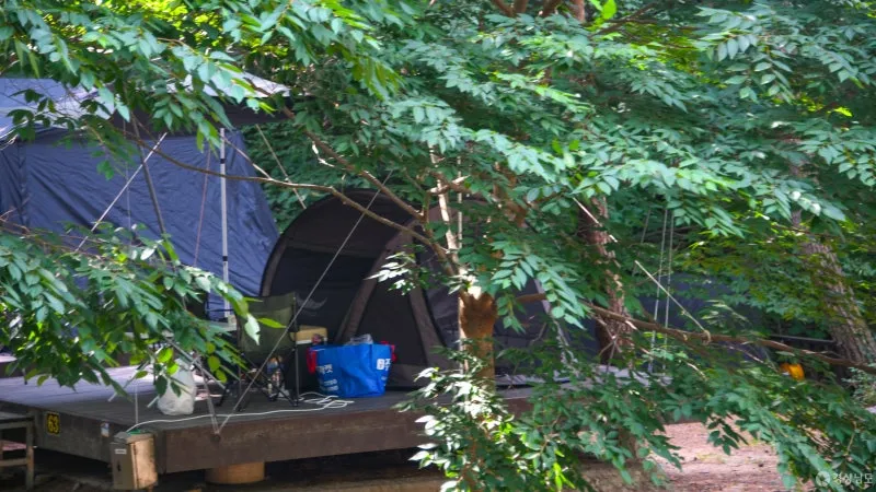 캠핑장의 가장 큰 장점은 우거진 숲 속에 자리하고 있다는 점입니다. 수령이 오래된 나무들이 촘촘히 들어서 있어 텐트 위로 햇살이 은은하게 스며들고, 여름철에도 비교적 시원한 그늘을 제공합니다. 바람에 나뭇잎이 흔들리는 소리는 자연의 음악처럼 들려오며, 텐트 속에서의 휴식이 더욱 특별하게 느껴집니다.
