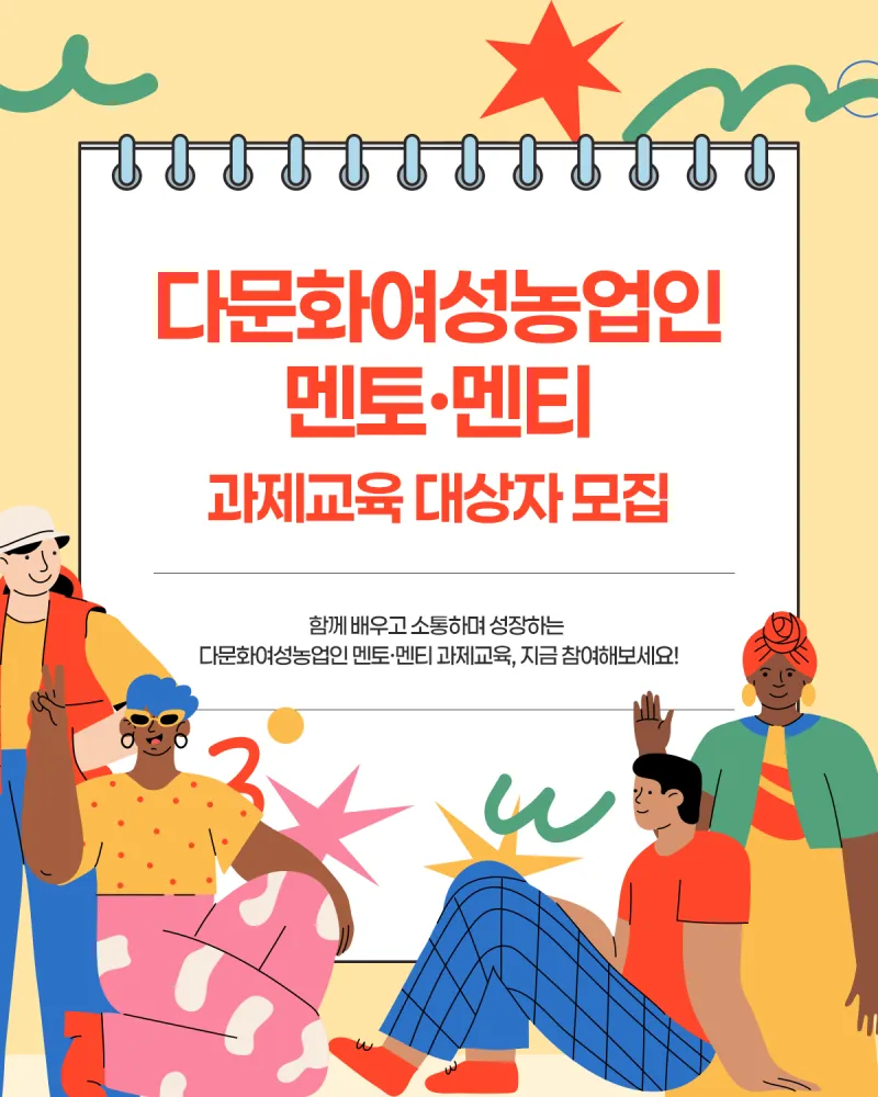 다문화여성농업인 멘토·멘티 과제교육 대상자 모집 💛