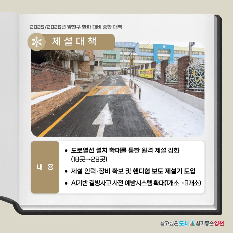 ✅ 제설 취약구간 도로 열선 설치 확대를 통한 원격 제설 강화(기존 18곳→29곳)