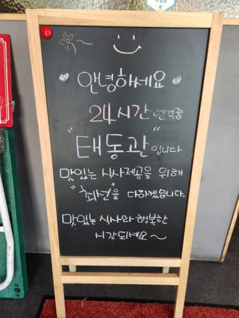 입구부터 안내판이 있습니다. 태동관짜장2900은 연중무휴 24시간 운영한다고 하는데요. 어떻게 24시간 운영하시는지 궁금합니다...