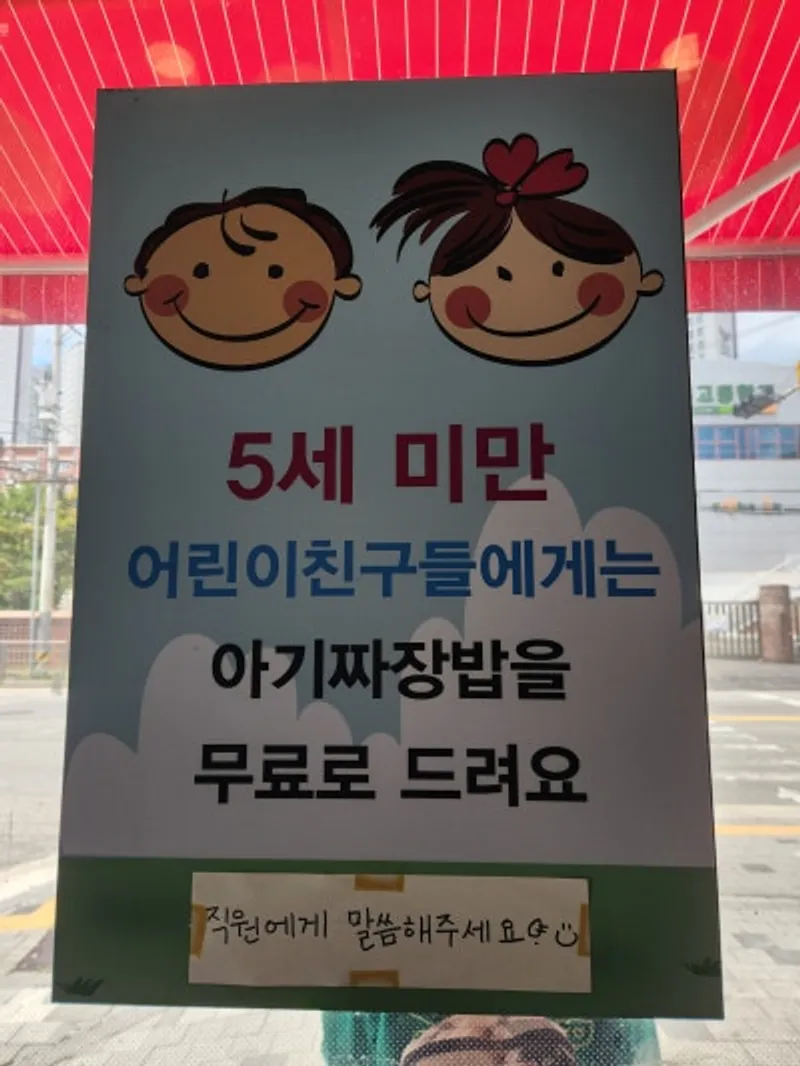 5세 미만 어린이 친구들에게는 아기짜장밥이 무료! 5세 미만 소리질러~