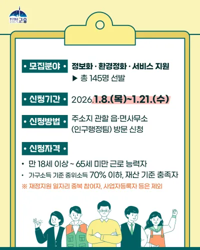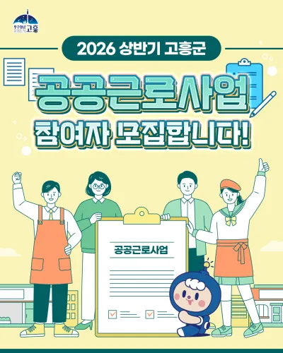 #고흥군 #고흥군청 #공공근로 #공공근로사업 #일자리정보 #일자리모집 #취업지원 #취약계층지원 #지역일자리 #상반기일자리 #고흥소식 #군민참여 #생활안정 #고흥사랑 #러브고흥 #love #우주