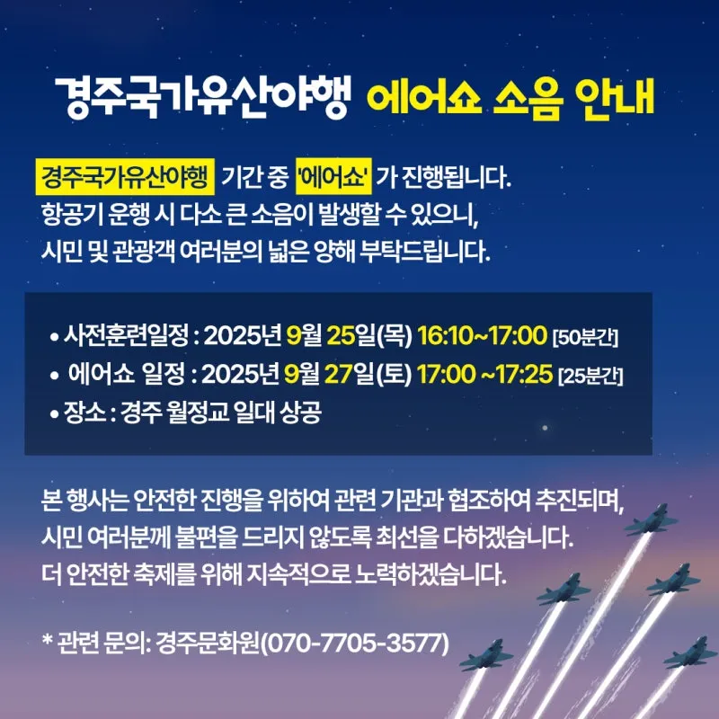 경주국가유산야행 기간 중 '에어쇼'가 진행됩니다.
