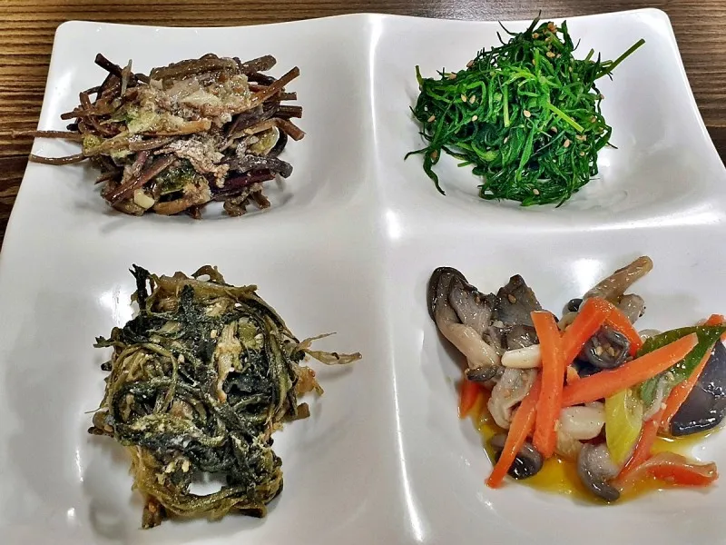 얼큰한 생선조림이 당겨서 고등어조림을 주문하였습니다. 주문과 동시에 주방에서 요리가 시작되고 그에 앞서 밑반찬이 차려집니다. 맛있게 익은 깍두기에,, 젓갈, 콩자반, 나물 등 기본 3찬입니다. 이어 고등어조림과 함께 메인 반찬이 한 번 더 차려집니다. 나물 4종입니다. 어전식당에서는 나물의 경우 봄이 되면 직접 뜯고, 말려 손질하였고, 김치 또한 직접 담그고 있었습니다. 직접 수확한 재료로 매일매일 맛있는 밑반찬이 만들어진다고 합니다.
