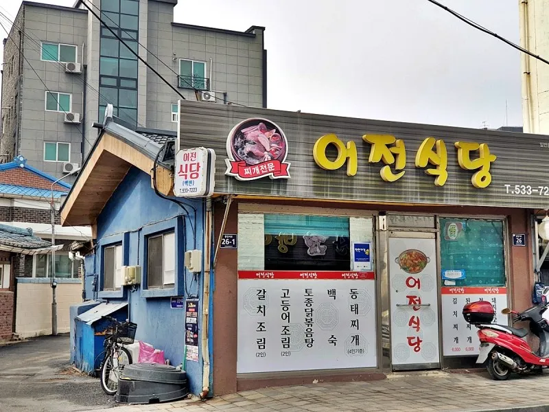 어전식당은 찌개 맛집이자, 생선조림 맛집으로 직접 담근 김치와 신선한 생선을 재료로 합니다. 그중 가장 인기 메뉴는 동태찌개로 얼큰하면서도 깊은 맛이 일품입니다. 고등어조림 역시나 생물로 느껴지는 부드러운 식감이 좋았습니다. 매콤한 국물에 자작자작 조려진 무와, 호박, 양파의 달달함이 골고루 스며들어 밥 한 공기를 뚝딱 비우게 됩니다.