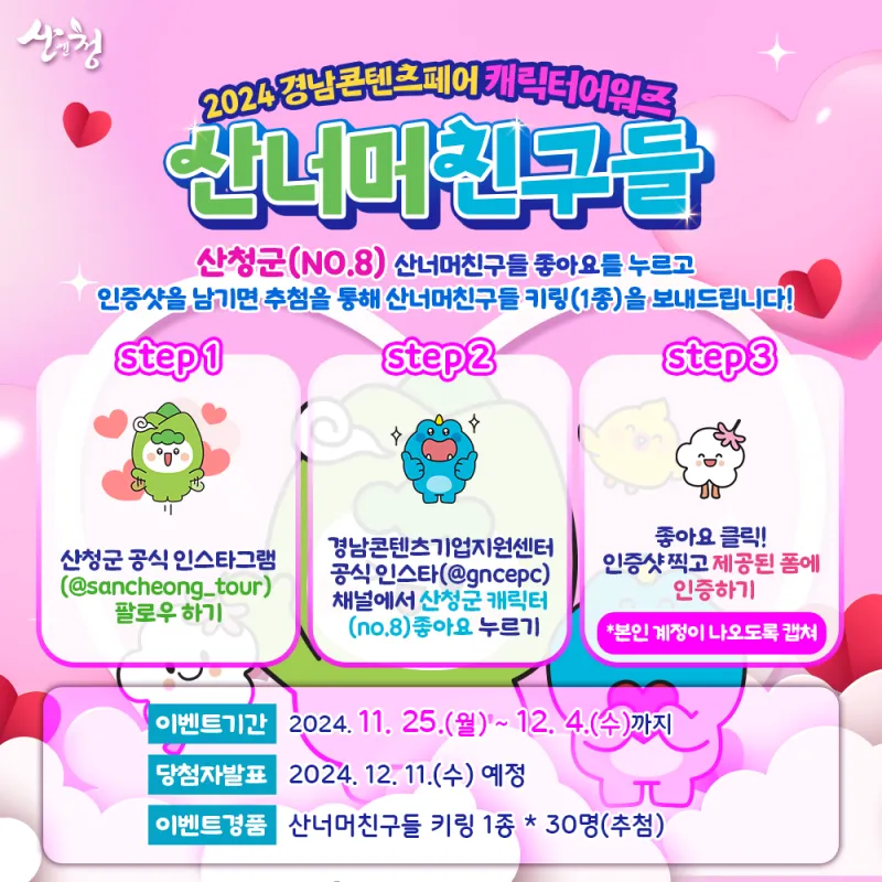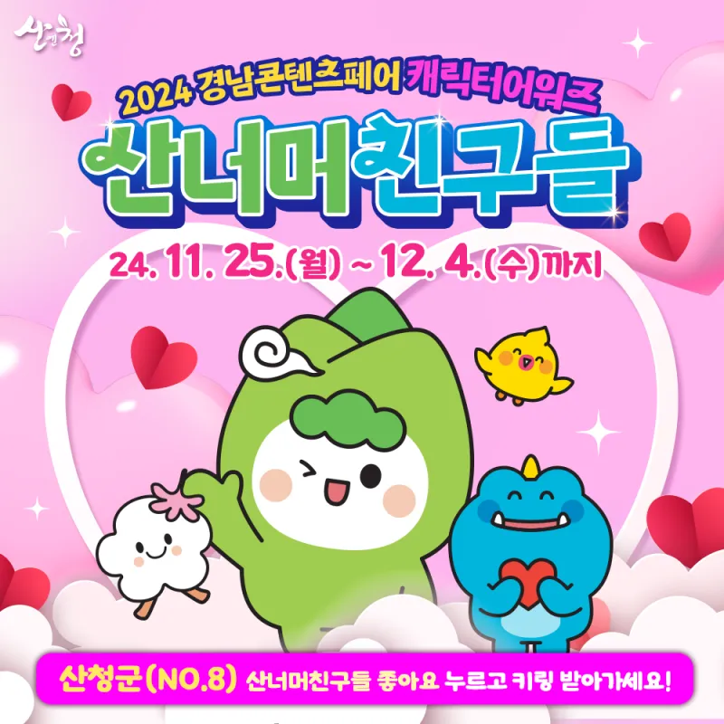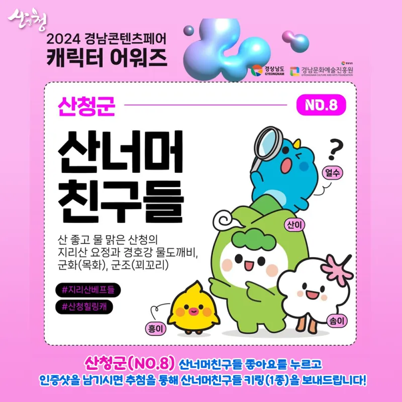 ⭐ 아래 링크를 통해 2024경남콘테츠페어 캐릭터 어워즈 산청(No.8) 투표할 수 있어요!!!!! ⭐