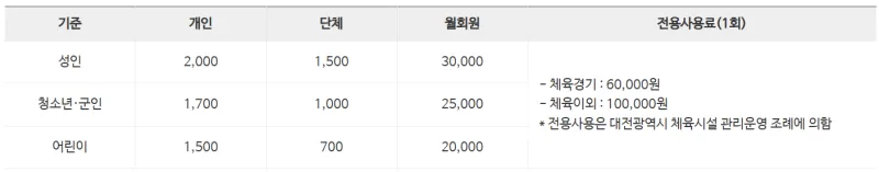 대전시민 누구나 부담 없이 즐길 수 있도록 저렴하게 책정되어 있습니다.