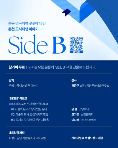 ※ '<SIDE B> 북토크'는 춘천시 도시재생사업의 일환으로,