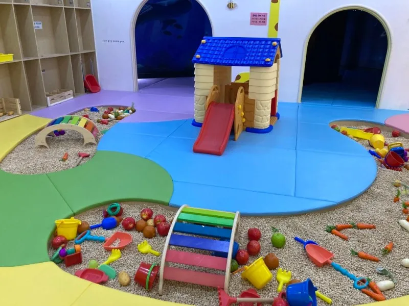 유아존은 아이들의 호기심을 자극하는 놀이가 많은데요. 대근육 발달을 위한 정글짐과 자립심을 기를 수 있는 미로방, 편백나무 놀이공간인 해님방과 소꿉놀이를 위한 동화방 등 아이들이 좋아할 만한 다채로운 방이 마련되어 있습니다.