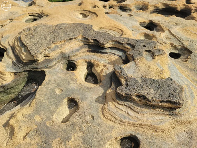 제주도에는 독특한 지형이 많은데요. 사계해변은 모래가 퇴적되어서 만들어낸 지형이라고합니다. 자연이란 참으로 신비로울 따름이죠. 군데군데 구명이 있고 그냥 바닦만 찍으면 어디 화성갔다 왔다고 해도 믿을 것 같아요