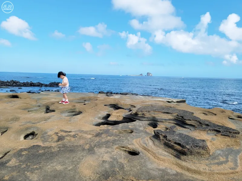 사빈과 아이와 바다! 그리고 형제섬까지 이게 바로 인생샷이죠. 사람들이 제주도에 오는 이유는 그 어떤 인테리어도 따라올 수 없는 멋진 풍경 때문 아니겠어요?