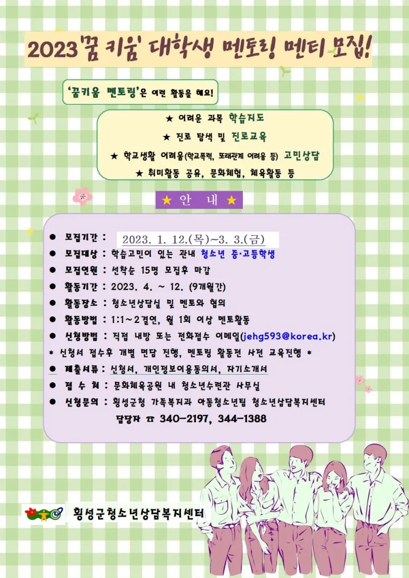 [꿈키움 대학생 멘토링] 청소년 멘티 모여라~!