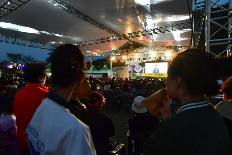 문화누리 야외 공연장에서는 ‘대가야 별빛쇼’ 를 앞두고 ‘군민화합 한마당’ 행사가 열리고 있었습니다.