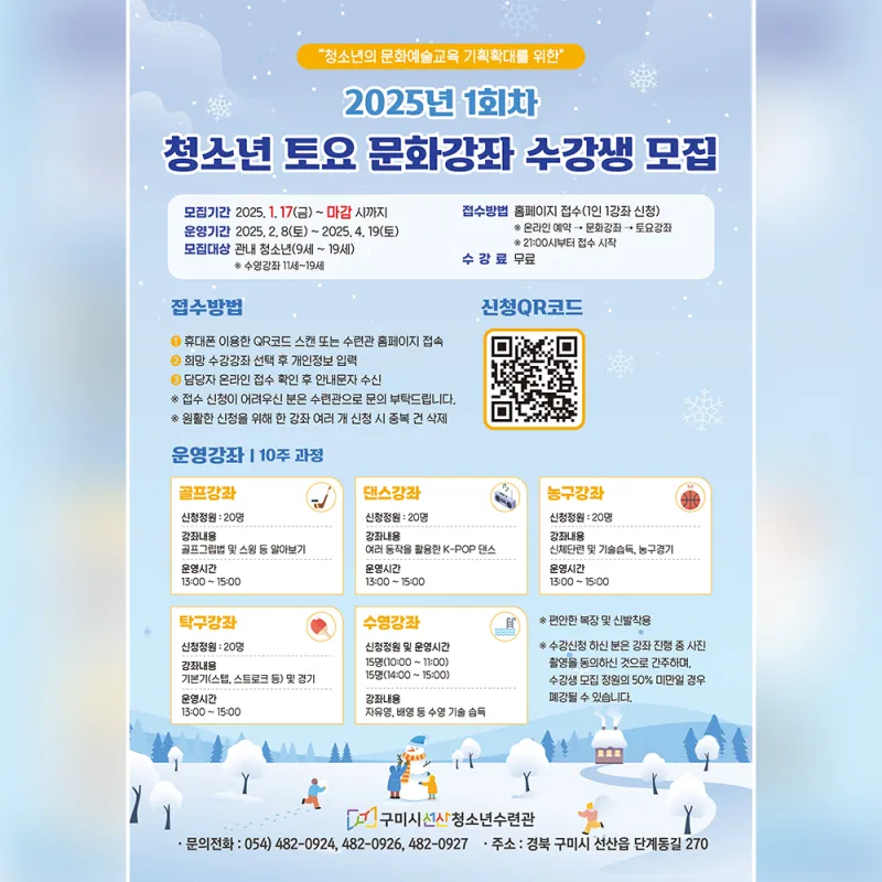 구미시선산청소년수련관 『2025년 문화강좌 수강생 모집』