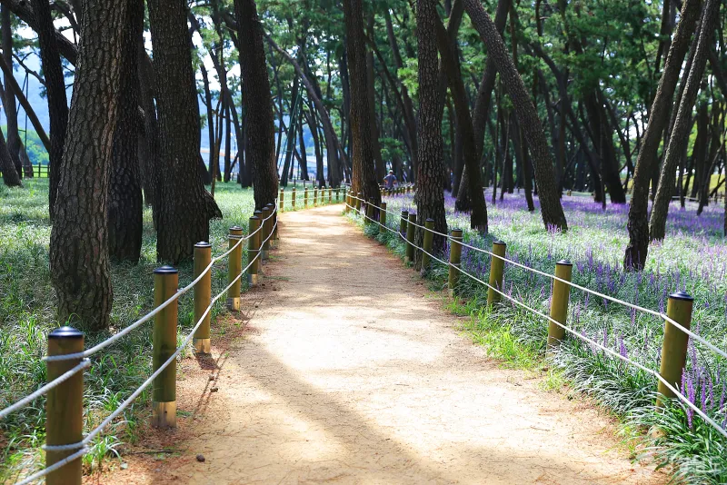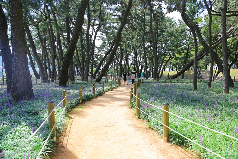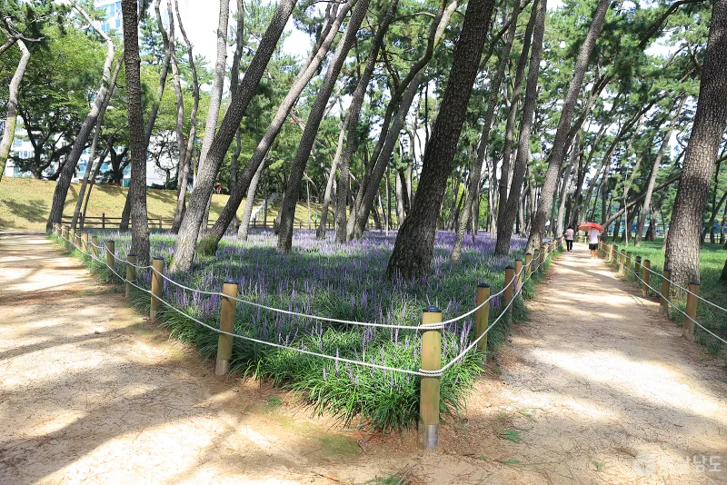 뜨거운 태양이 내리쬐는 여름철 삼문 송림 숲을 거닐다 보면 시원한 솔바람과 보랏빛 향기를 만끽할 수 있어 지친 일상에서의 스트레스 해소와 가족, 연인, 친구 등과 함께 아름다운 추억을 만들 수 있답니다.