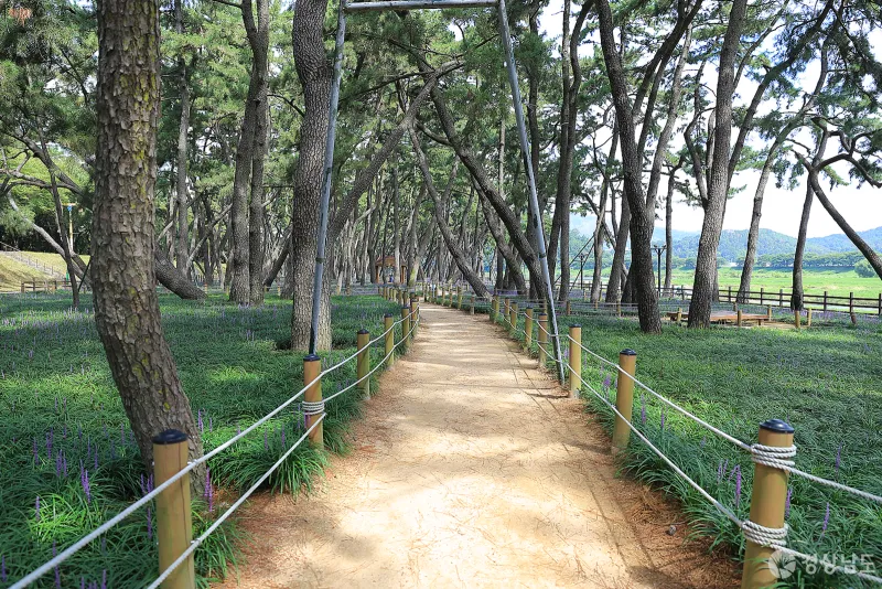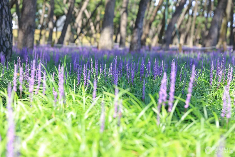 삼문 송림은 예전부터 아름드리 소나무숲으로 유명해 시민들이 찾아가서 산책을 즐기는 명소인데요. 8월이면 소나무 그늘 아래 보랏빛 맥문동을 보기 위해 많은 사진가들이 찾고 있는 곳이기도 합니다.