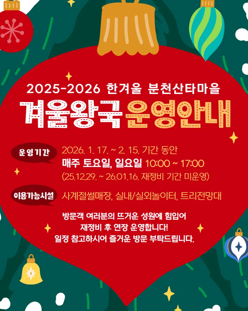 📅운영기간 : 2026. 1. 17. ~ 2. 15. 기간 동안 매주 토요일, 일요일 10:00 ~ 17:00