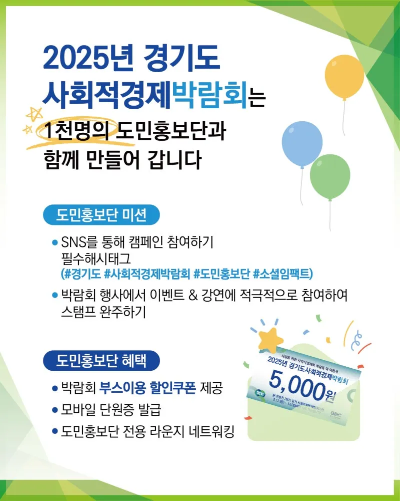 ✔️SNS를 통해 캠페인 참여하기 ※필수 해시태그 : #경기도 #사회적경제박람회 #도민홍보단 #소셜임팩트 |