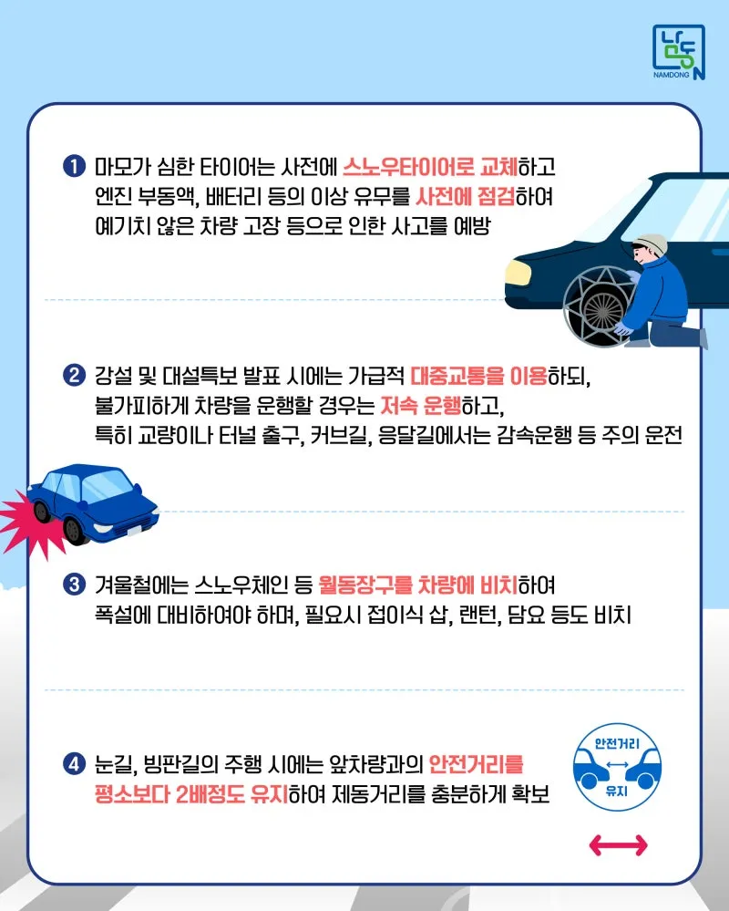 겨울철 안전사고 예방을 위한 눈길 안전운전 요령 안내