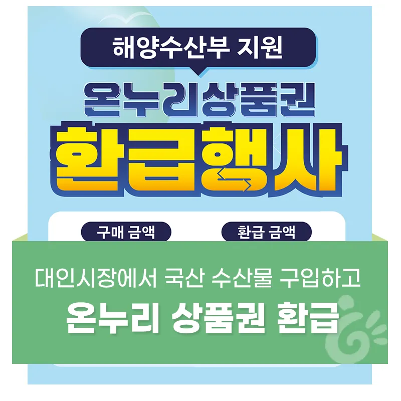 국산 수산물 구매하시고 온누리 상품권 환급받아보세요~
