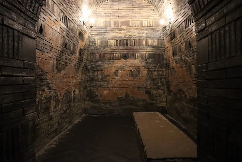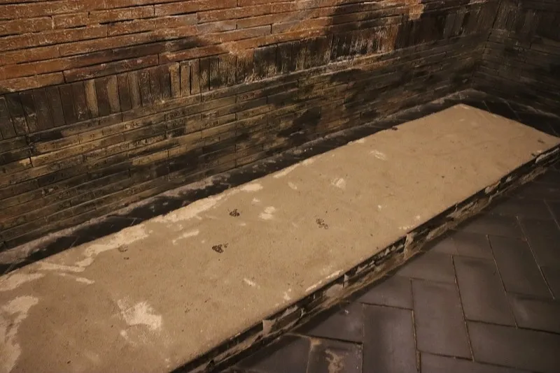 역사책에서 봤었던 다양한 그림과 꽃이 들어가 있는 벽돌은 이색적으로 다가옵니다. 바닥은 묘실처럼 벽독을 삿자리문으로 깔았으나 묘실 바닥보다 높게 만들어 묘실 내의 관대와 같은 높이를 유지해 주었습니다.