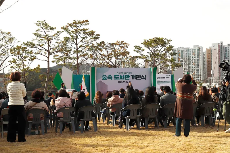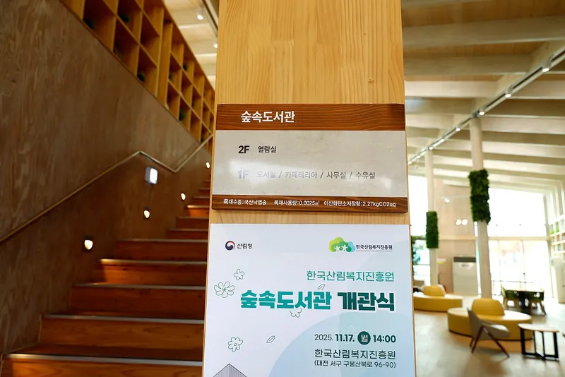 한국산림복지진흥원 숲속도서관 개관식은 지난 11월 17일 오후 2시에 진행했습니다. 도서관 건립 경과보고와 시설 관람이 이어졌고,