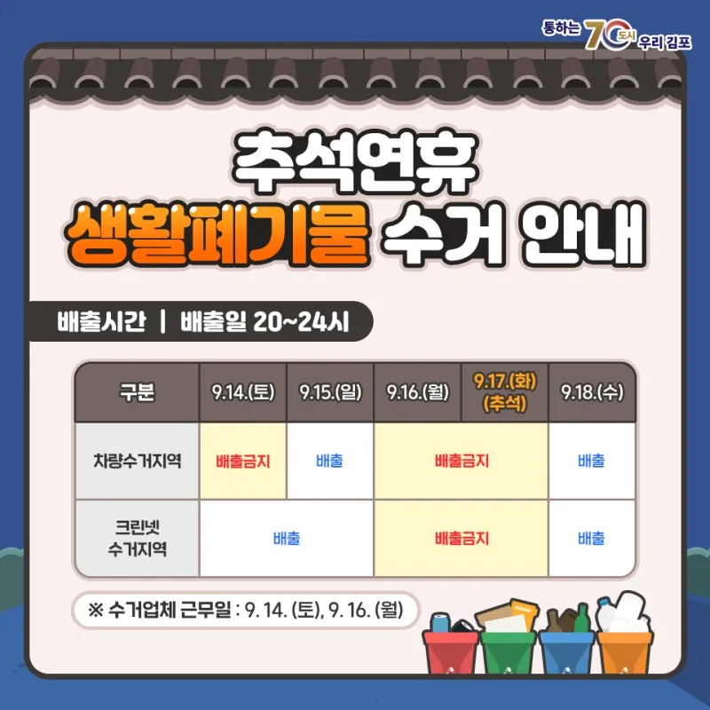 ※ 수거업체 근무일 : 9. 14.(토), 9. 16.(월)