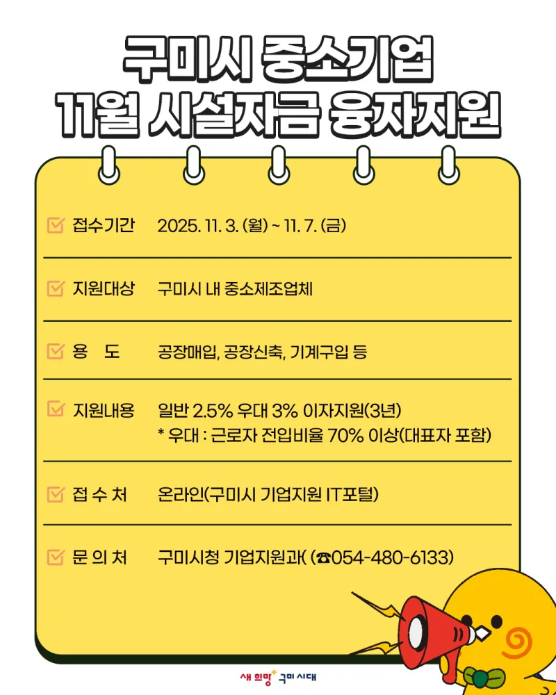 · 문 의 처 : 구미시청 기업지원과(☎054-480-6133)