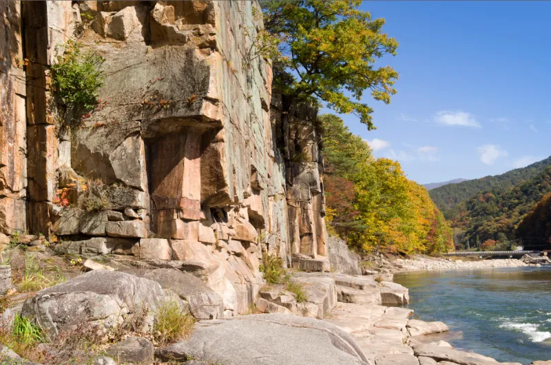 사인암은 절벽 아래 흐르는 남조천까지 흘러