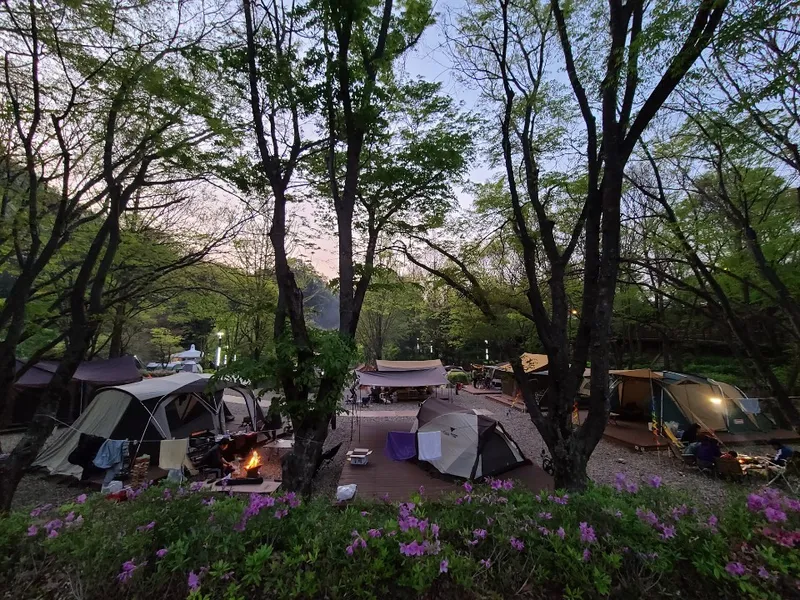 실외 놀이 공간인 팡팡그라운드, 원두막 캠핑장 등