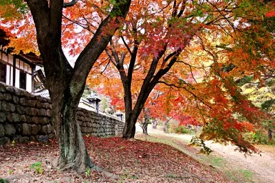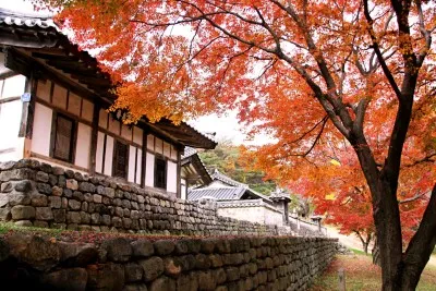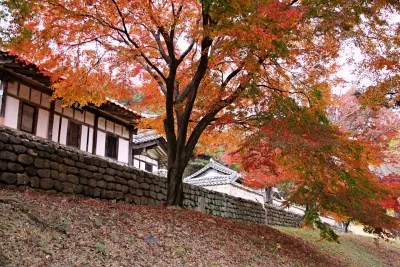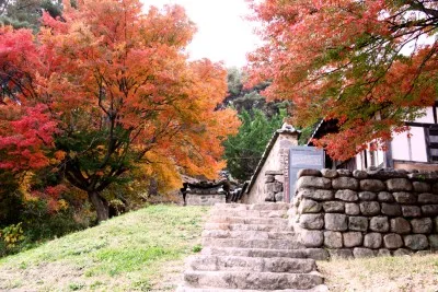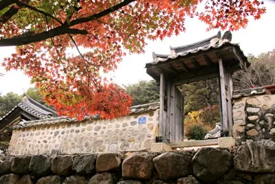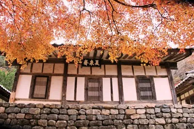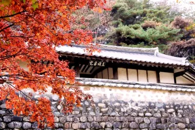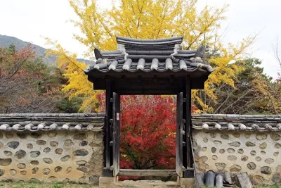 특히 대문 안에서 보이는 단풍의 아름다운 모습은