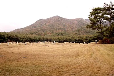 소나무숲과 함께 넓은 잔디마당, 그리고 그 뒤에 기룡산이 어울린 멋진 공간이