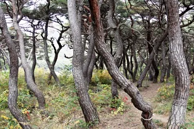 수몰지역문화재가 보이고 그 옆에는 명품 소나무 숲이 자리하고 있는데
