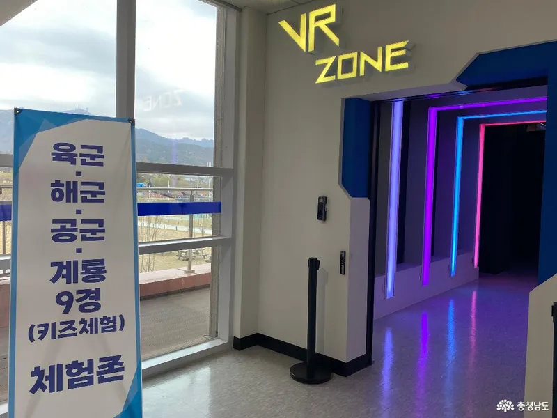 VR존은 육군전차 체험, 해군 잠수함 체험, 공군 전투기 체험, 체험샷, 가상모의전투 체험, 롤러 쿨러스터 VR, 그리고 계룡 9경 스크린 샷등의 체험 공간들이 있습니다.
