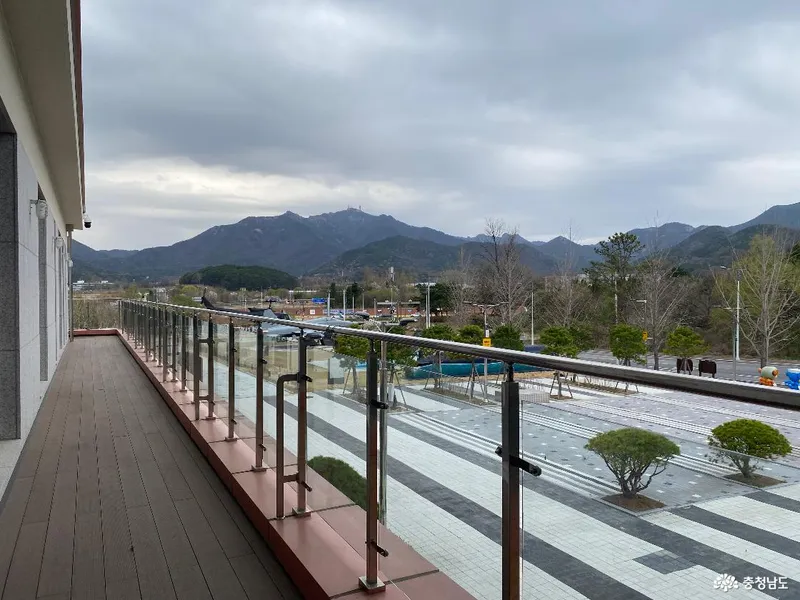 야외 테라스는 가슴이 탁 트이도록 넓었는데요 , 저 멀리 계룡산 천왕봉이 보여서 더욱 좋았습니다.