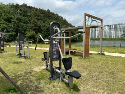 한쪽에는 공공 운동기구가 설치되어 있어,