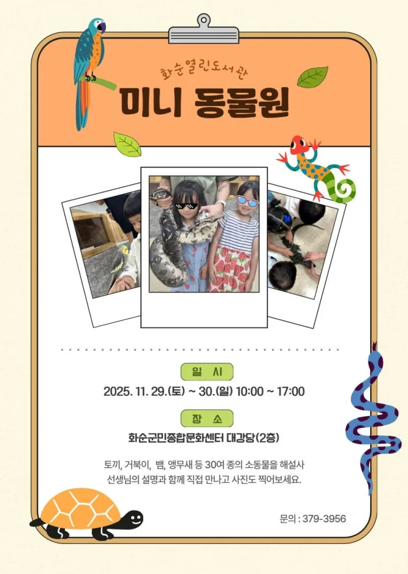 화순열린도서관 미니 동물원 운영 안내