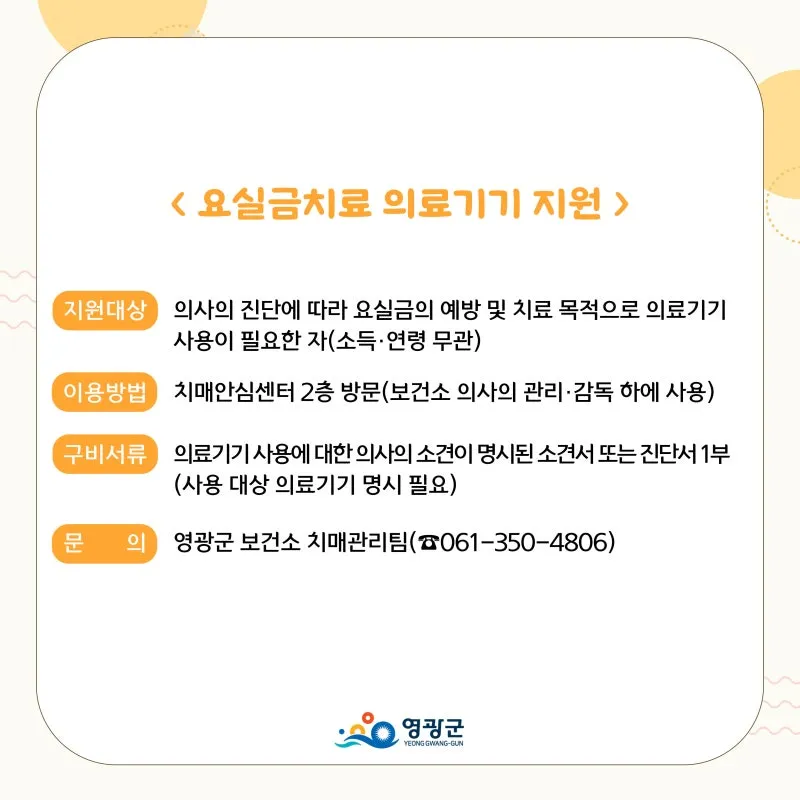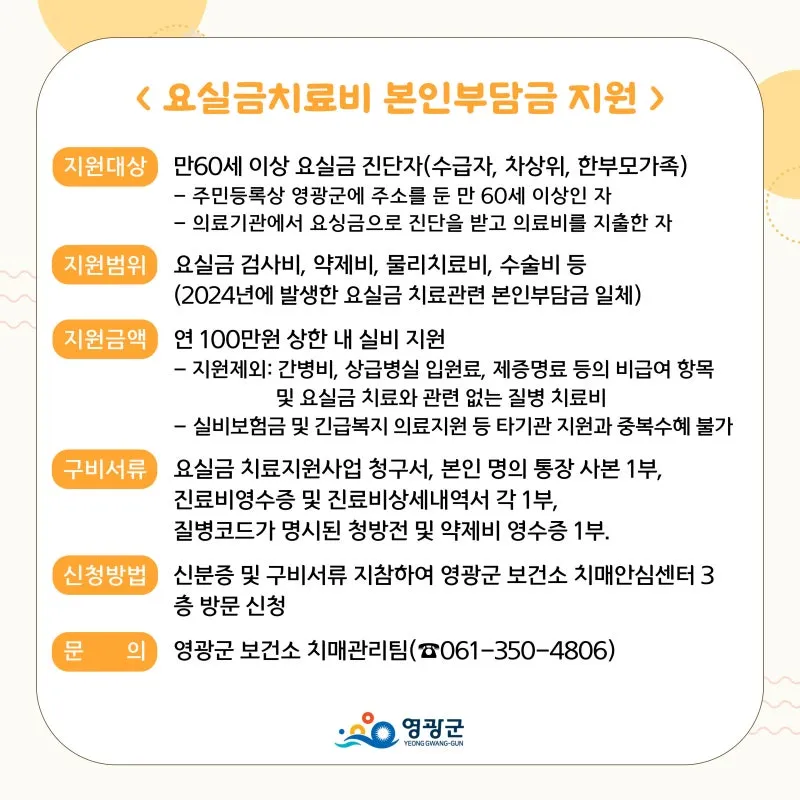 영광군에서는 치료비지원 사업을 진행하고 있습니다.