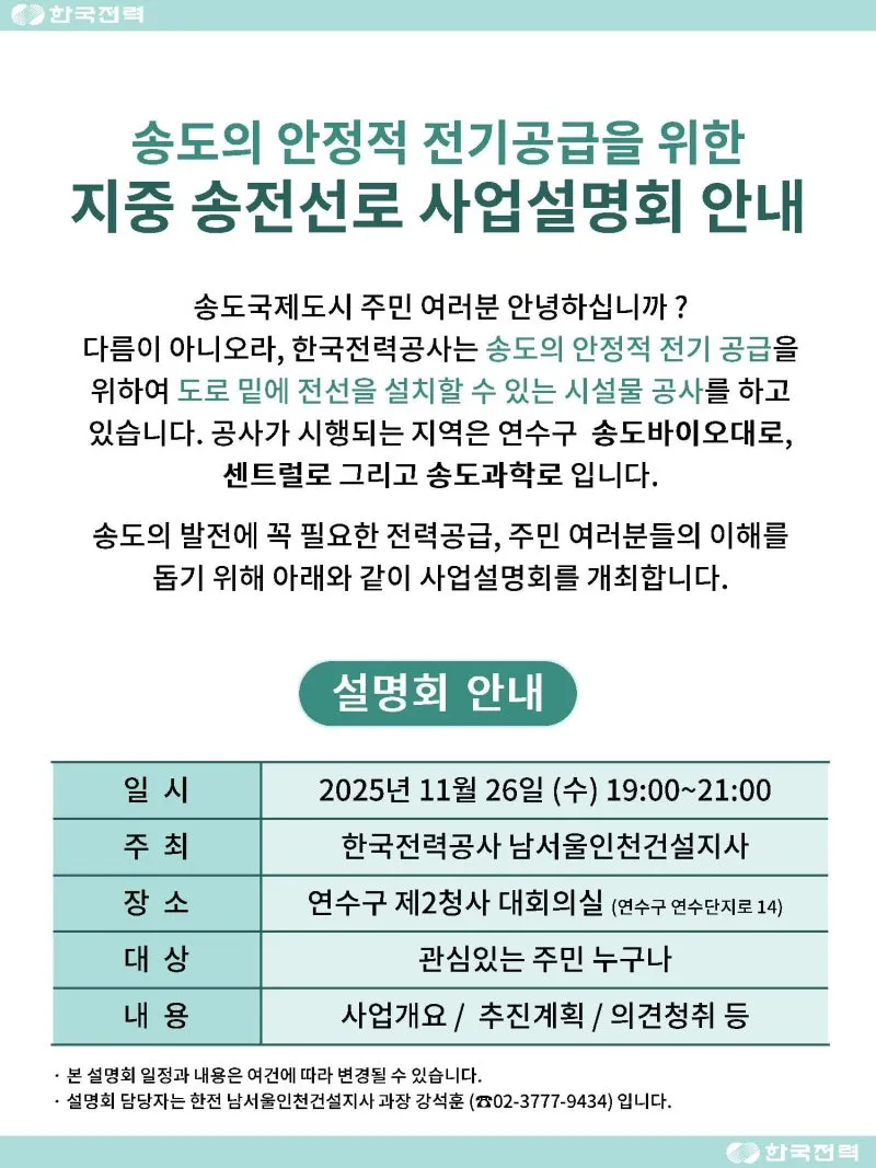 #송도국제도시 #지중송전선로 #사업설명회