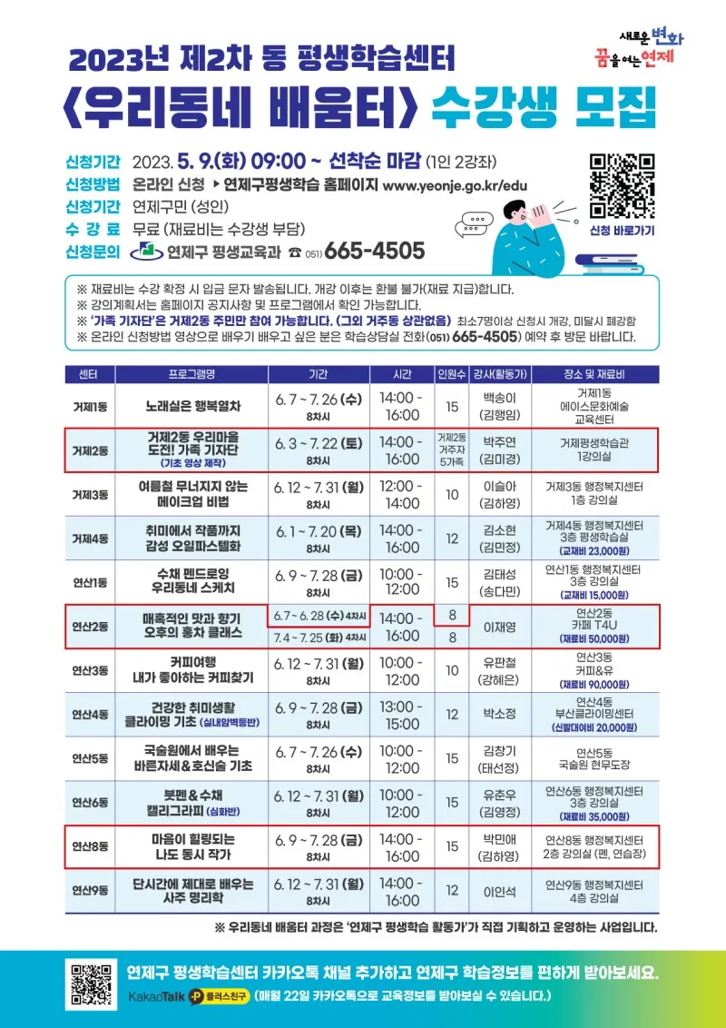 거제2동, 연산2동, 연산8동 프로그램의 수강생을 모집합니다!