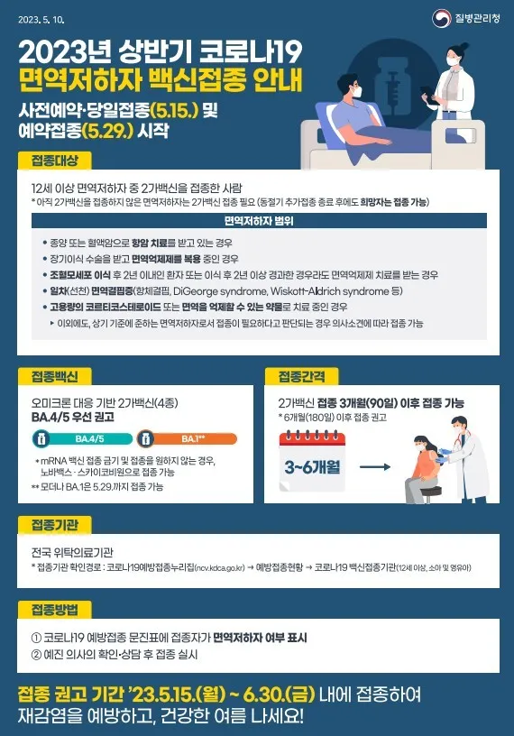 면역저하자에 해당하는 분들은 감염 예방을 위해 백신을 접종하시기 바랍니다!