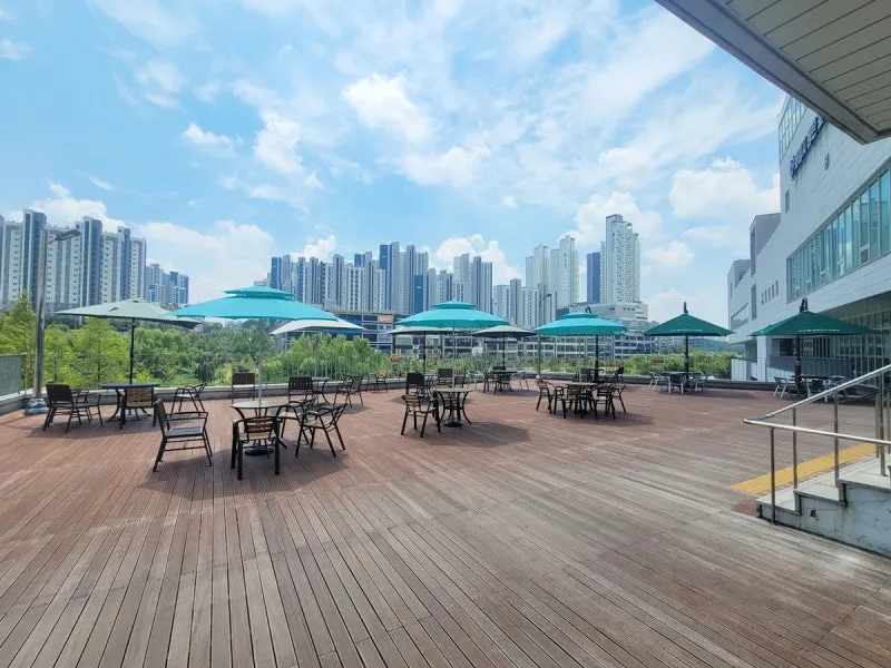 와우~ 멋지죠. 로컬푸드 직매장 동탄호수점은 넓은 테라스와 파라솔을 갖춘 쉼터를 이용할 수 있습니다. 동탄 신도시 풍경을 보며 노노카페에서 테이크아웃한 커피를 마시며 가족, 친구들과 수다 타임을 갖기에도 좋을 것 같습니다.