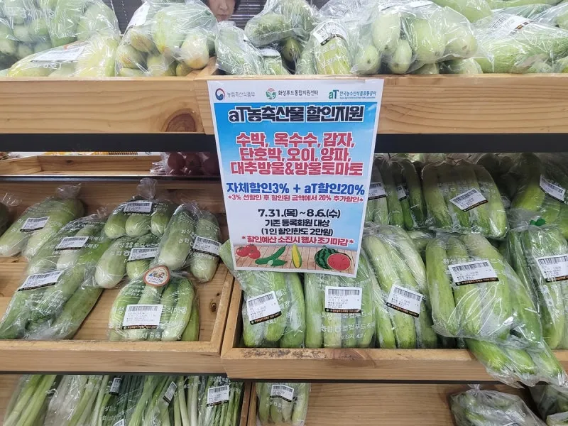 로컬푸드 직매장에서는 때때로 할인 지원 행사를 합니다. 제가 갔을 때 aT 농축산물 할인 행사로 최대 23% 세일 행사를 했었습니다. 저렴한 가격으로 질 좋은 농산물을 구매할 수 있는 좋은 기회입니다. 이런 행사는 자주 열린다고 합니다.